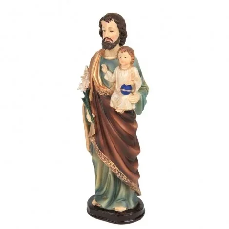 La statue de Saint Joseph représente le père adoptif de Jésus et l’époux de la Vierge Marie, symbole de protection, de travail et de bienveillance. Patron des familles, des travailleurs et des pères de famille, Saint Joseph est invoqué pour obtenir guidance, force et sérénité. Souvent représenté tenant l’Enfant Jésus ou un lys, il incarne la douceur et la fidélité. Placée dans un lieu de prière ou offerte en cadeau, cette statue est un rappel de la confiance et de la foi en l’amour de Dieu.