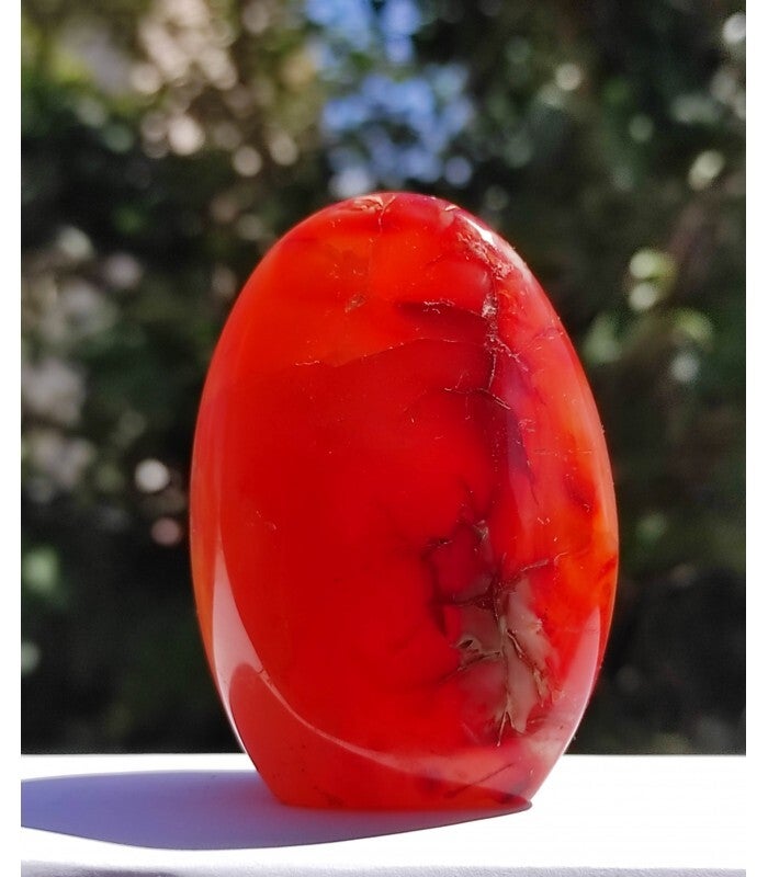 Pour recharger la Cornaline, vous pouvez la laisser quelques heures à la lumière du soleil. Il est aussi possible de la poser sur une surface en quartz ou une géode d’améthyste.